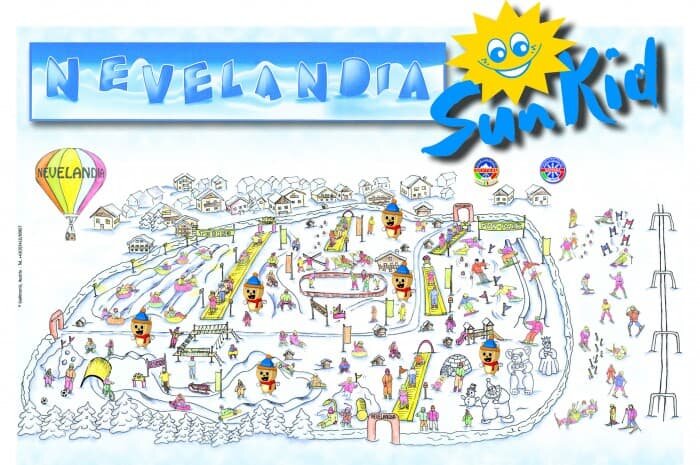 Nevelandia provides guests with no less than 130 inflatable tires for this purpose, which are also used in the summer. Namely, on the 60 m long plastic track for the summer season. The spacious solarium near the skating rink offers parents and grandparents relaxation and an opportunity to sunbathe without losing sight of the children playing. The park also offers a range of equipment especially suitable for the very young: the snow carousel, inflatable animals, swings, slides and"Sappy", the park's mascot.