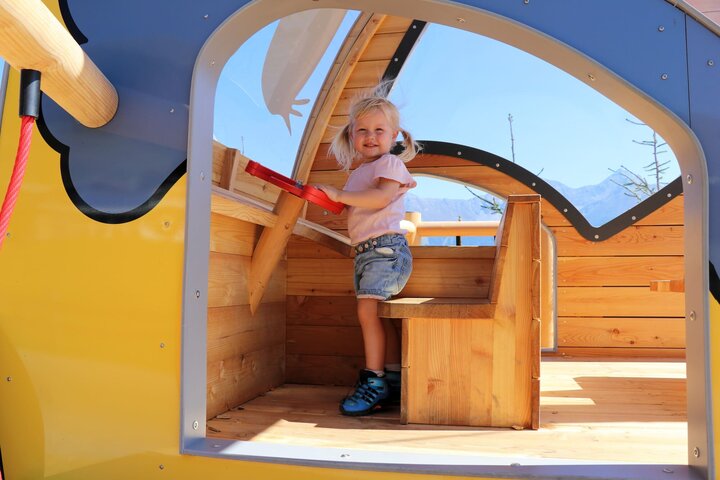 In "Berta's Kinderland" in Fiss, right next to the Ski School's central "Kindervilla", the play area was also expanded. With a cow-spot design and the face of the family destination's mascot (snout, eyes, mop of hair and horns), "Berta's Pistenraupe" awaits all adventurous little summer and winter guests who want to slip into the role of a snow groomer´s driver.