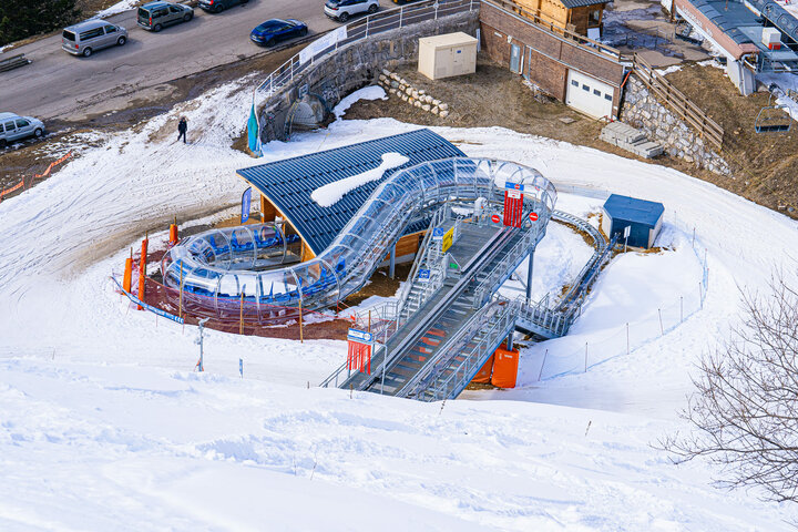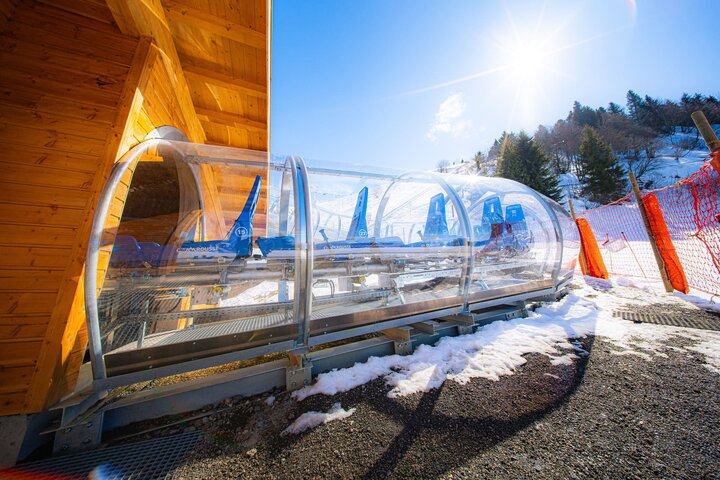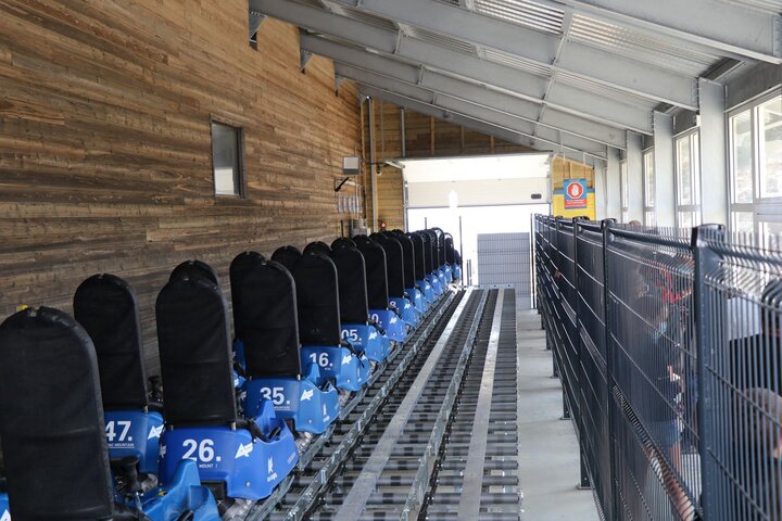 Des chariots de transport spéciaux permettent un stockage flexible, rapide et maniable, une option plus économique lorsqu'aucune infrastructure existante n'est disponible, les luges peuvent également être transportées du sous-sol à la piste au moyen d'une grue.