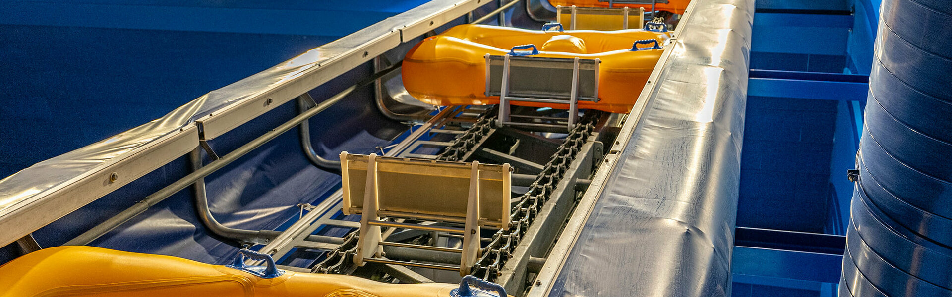 Afin d'offrir à tous les clients une expérience inoubliable et confortable - sans avoir à transporter les pneus encombrants du toboggan - un convoyeur vertical de pneus a été ajouté à la fin de l'année 2023.