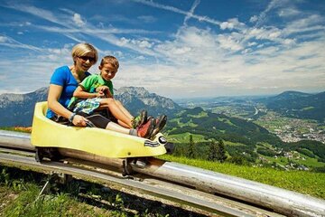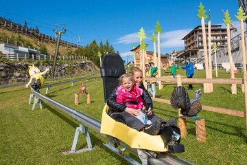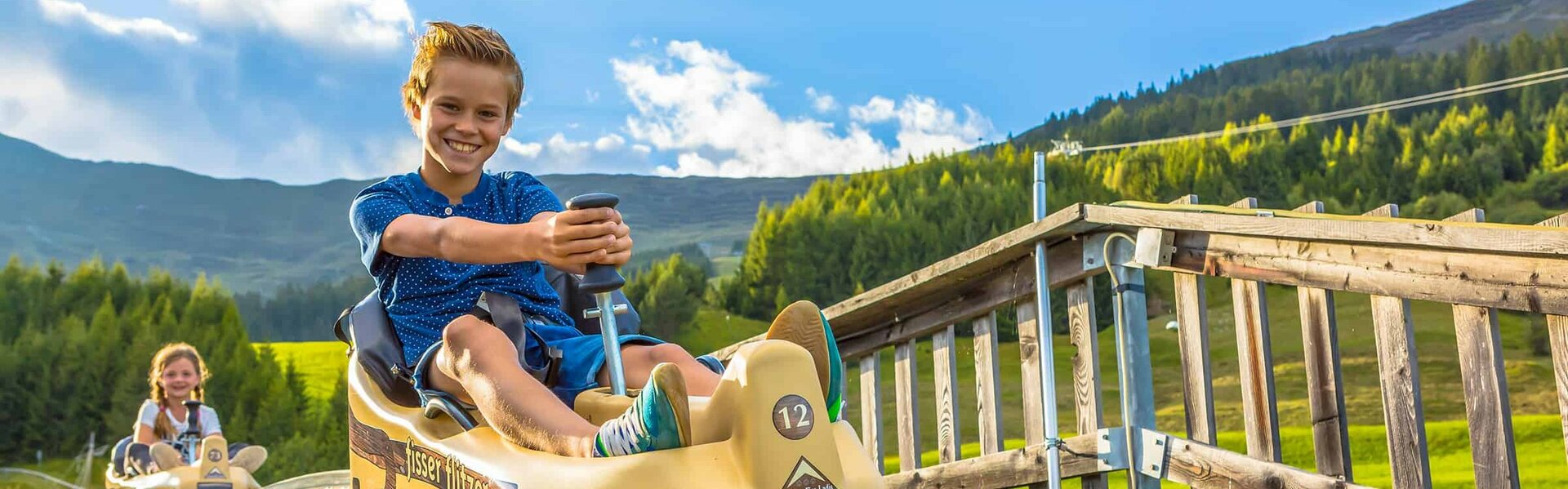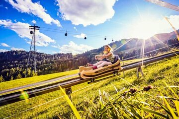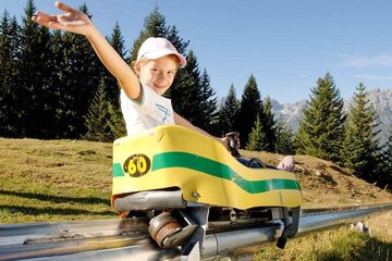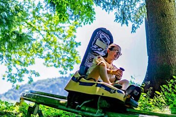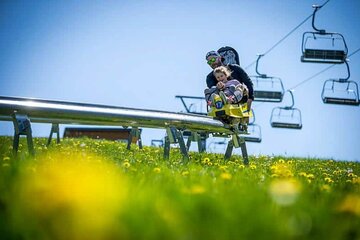 L'aventure commence à la station aval, qui se trouve non loin de quelques nouveaux hôtels et pensions. De là, le télésiège six places décolle et se met en route en direction du sommet de la montagne. Il traverse des prairies et des zones boisées jusqu'à la station supérieure et le lac d'accumulation situé à côté, à 1900 m d'altitude. À deux pas de la station de remontée, l'expérience unique de la glisse commence sur une piste monorail de 2,5 km. Il suffit de monter dans la luge du coaster et c'est parti pour un voyage de découverte à toute vitesse à travers un paysage varié. Après avoir passé les premières prairies de montagne, des virages relevés mènent dans la première partie de la forêt. Ici, les sauts sont le point culminant de la descente. Après un bref retour dans un paysage de prairies, un virage à grande vitesse donne un coup de fouet particulier. En traversant un pont, on retourne dans un environnement boisé qui, grâce aux arbres laissés à proximité du parcours, permet de se rapprocher de la nature et d'intensifier les sensations de conduite. Ensuite, on sort de la forêt pour les derniers mètres, où une conception spéciale du parcours procure encore une fois de l'adrénaline. L'arrivée est déjà en vue et les virages particulièrement larges ainsi que le frein de fin de piste situé à la fin du parcours permettent de terminer en douceur une course impressionnante. Des points photos intégrés dans le parcours ont bien sûr immortalisé des moments particuliers et créent des souvenirs en images d'une expérience impressionnante.