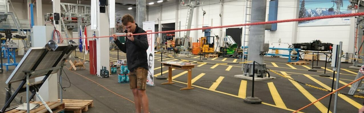 Ils ont planifié leur petit téléski pendant un an et demi et l'ont monté en 80 heures dans le hall des remontées mécaniques de l'école professionnelle. Le projet final a été soutenu par une corde synthétique épissée sans fin de la société Sunkid.