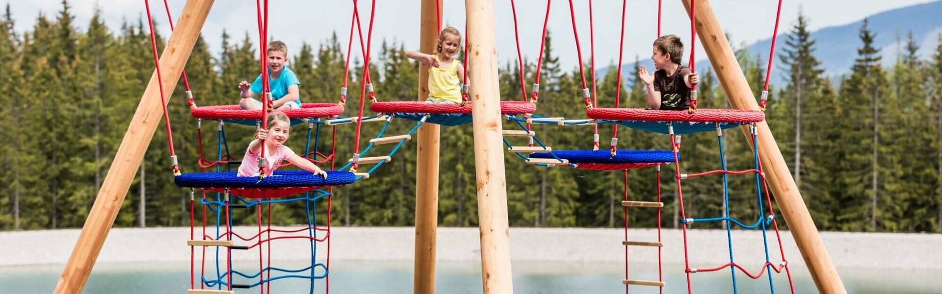 Les amateurs d'action ne sont pas en reste au lac de baignade : un pont d'aventure avec un tremplin, un mur d'escalade et un toboggan aquatique offre la possibilité parfaite pour une ultime montée d'adrénaline. Pour les clients qui préfèrent profiter du calme et de l'idylle du lac, la station Kneipp avec bassin à gué et bassin marchant intégrés ainsi que le bain pieds nus et les chaises longues bien-être constituent une offre reposante.