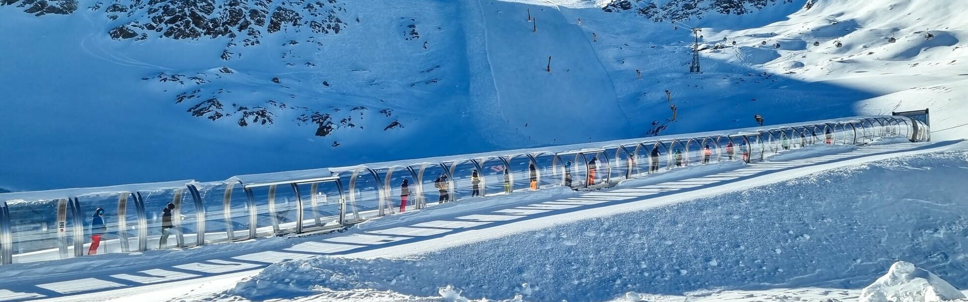 Pour combler cette différence de hauteur, les remontées mécaniques du glacier de l'Ötztal ont examiné différentes solutions logistiques et ont finalement opté pour un tapis magique de 174m de long comme tapis de liaison.