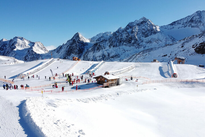 Plus d’un million de personnes sont transportées chaque année sur le glacier de Stubai (Neustift). Lors de notre visite début janvier 2025, le plus grand domaine skiable glaciaire d’Autriche s’est montré comme décrit sur la page d’accueil — avec « des paysages fascinants et des moments inoubliables de sports d’hiver ensoleillés » malgré une température de moins 12 degrés et des rafales de vent glacé.