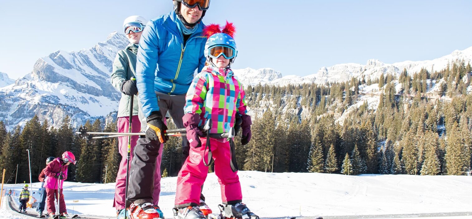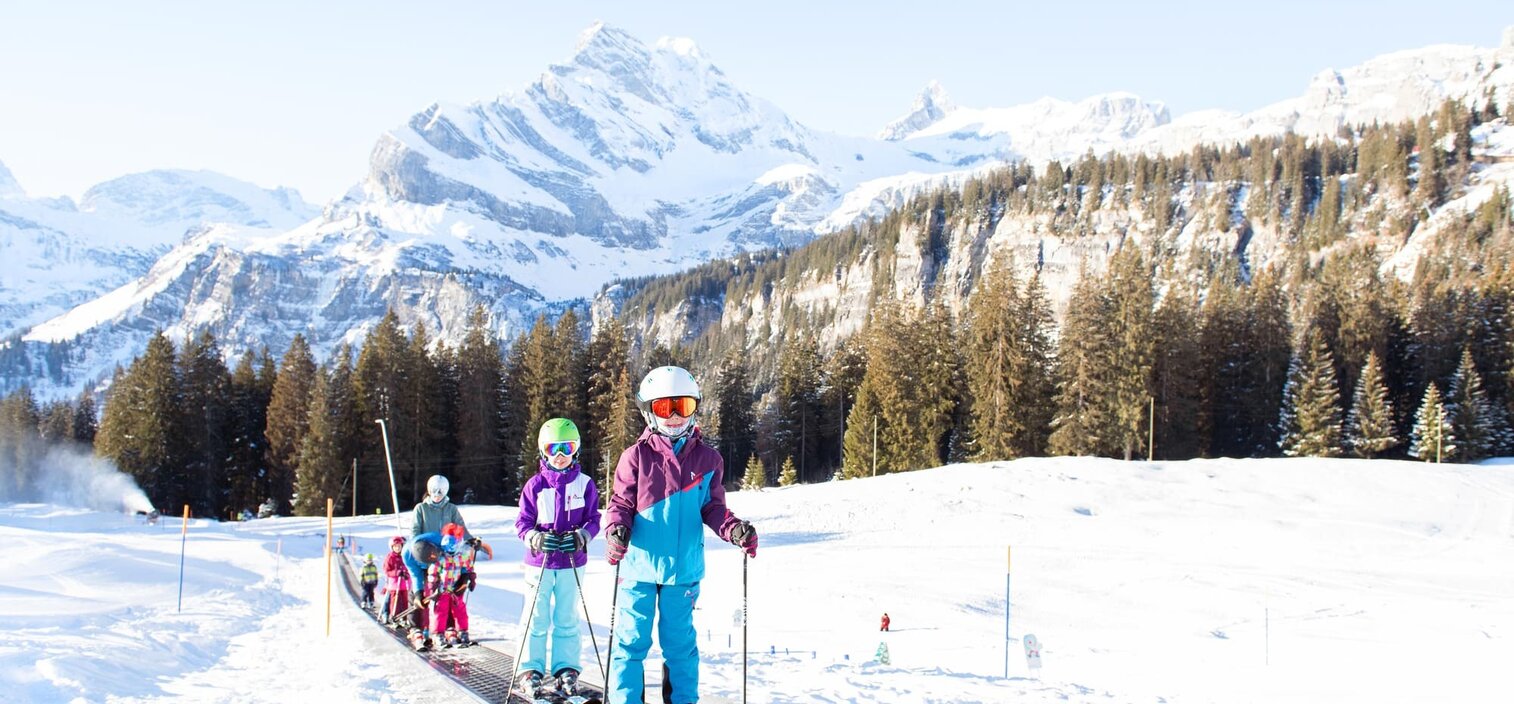 Près du parc à neige pour enfants du domaine skiable de Braunwald (CH) se trouve une zone d'entraînement appelée "Zwergen-Land Grotzenbüel", idéale pour les enfants et les adultes qui font leurs premiers pas sur les skis ou le snowboard.