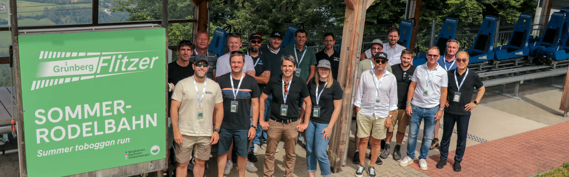 In addition to the international exchange of experiences, intensive training room modules and interesting factory visits (Bruckschlögl and Braso Technik), there was also plenty of socializing and fun during a visit to the mountain coaster customer facility "Grünberg Flitzer" (Gmunden, Austria).
