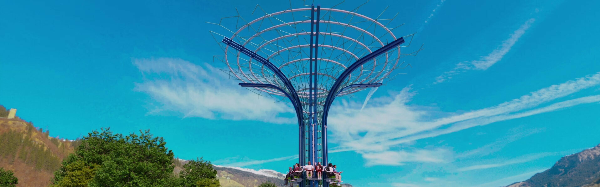 In addition to the special riding experience, the Rocking Tower offers a unique “signature design” for park, visitors and spectators – with multiple theming options. The all-new ride design is perfect for installations on elevated spots, like hills, skyscrapers or cruise ships. Future customers will also profit from the small footprint with small clearance section around the tower (bottom), allowing installation close to existing facilities.