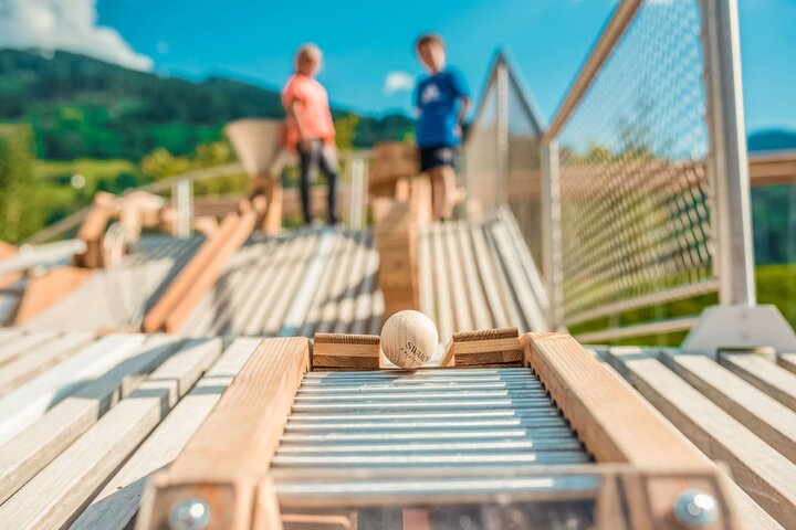 In beautiful Vorarlberg, we got to build two high alpine playgrounds on two mountains in the Silvretta Montafon mountain region this year. While a total of 6 ball tracks with over 30 ball track stations were built for our youngest guests on the Genussberg Nova, the somewhat older ones can let off steam to their heart’s content at the motor skills park on the Hochjoch adventure mountain.