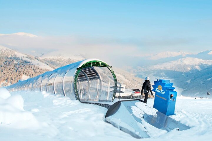 A worldwide unique project was implemented in Gerlos in the Zillertal Arena and now presented to the public. "The new Moving Carpet gallery, which is equipped with solar modules, produces more green electricity than the system itself requires. The surplus residual electricity can be fed into the power grid," explains DI (FH) Manuel Kammerer, the project manager. Sunkid CEO Mag. (FH) Emanuel Wohlfarter expects worldwide demand for the new Sunkid system due to the rapid return on investment and the extremely low operating costs. David Kammerlander, Managing Director of the Gerlos Ski Lift Center , is pleased that the Zillertal Arena is once again demonstrating its innovative strength and technological leadership with this investment, particularly in terms of environmentally friendly energy generation. The Sunkid Moving Carpet Gallery, developed in 2001, protects passengers from snow, rain, wind and cold with an unobstructed view to the outside. The gallery also has advantages for operators, as the conveyor belts can be put into operation quickly even in the most adverse weather conditions and snowfall.