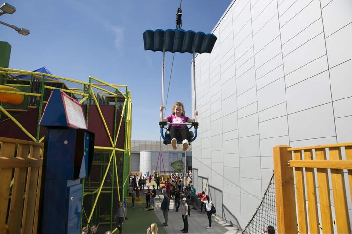 The highlight, however, is undoubtedly the Sunkid Skydive, which allows children to fly over the entire play area in front of the shopping center at a height of 7 meters. This provides a little adrenaline for the children and also a lot of fun for the adults. This also turns a trip to the shopping center into entertainment for the whole family.