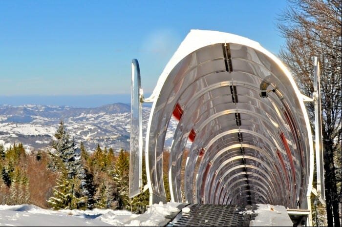 The region of Emilia Romagna is widely known for its culinary specialties such as Parma ham, balsamic vinegar or Parmesan cheese. But winter sports enthusiasts can also experience true moments of pleasure in this region. At Monte Cantiere, for example, you will not only find a breathtaking panorama, but since this winter also a technical treat in the form of a 189-meter-long Sunkid Moving Carpet with gallery. Its ingredients include a 750mm wide extra-strong conveyor belt, a combination exit, an active hydraulic Mammut tensioning station and the innovative 1.2 m/sec high-speed version.