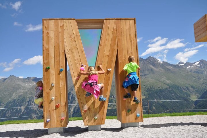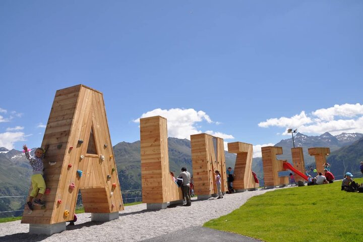 In addition to large information boards, there is also a three-meter high "ALMZEIT" lettering at the middle station of the Gaislachkoglbahn cable car. This is also equipped with a slide, climbing facility and lounger. A motor skills course - the so-called running time - on the other side of the middle station, awaits with twelve exciting stations where children and adults can test their skills.