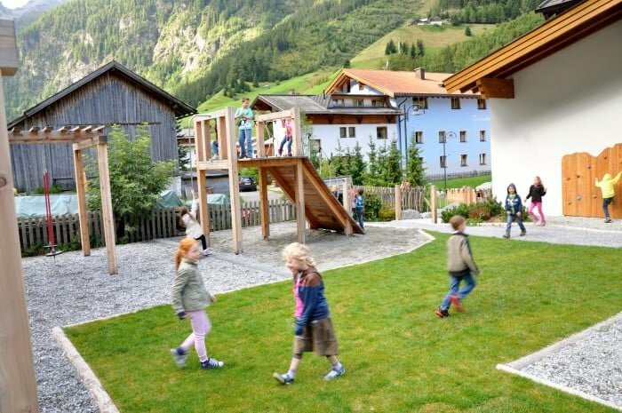 After an intensive period of preparation, the community of Kaunertal set itself new goals as part of an innovation process for village renewal. During this phase, a desire arose among the population for a meeting place for young and old, which was to become reality in a livable design of the village square. The village square is located directly next to the school and is divided into three parts: the school garden, the children's playground and the forecourt.