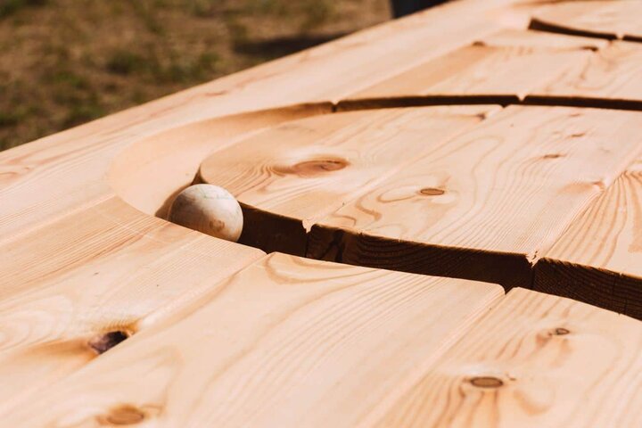 The principle of the products is easy to explain: The custom-printed wooden ball is ejected by operating a specially designed wooden ball machine. With the branded ball in hand, guests young and old then head for the Wooden Ball Tracks or Wooden Ball Tower.