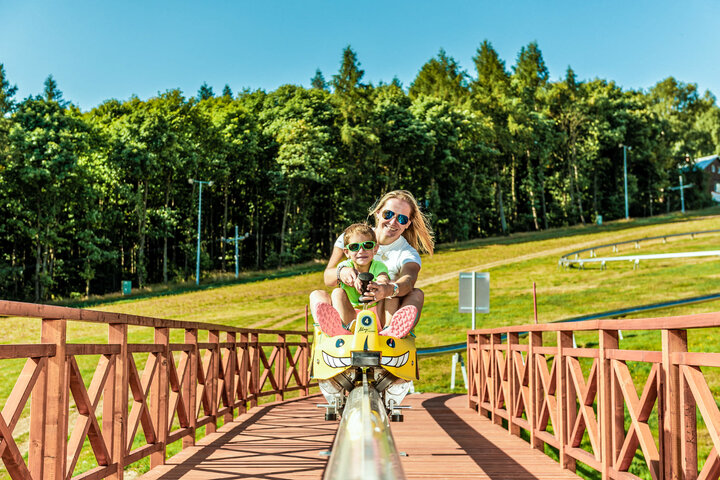 Since this year, the sports area of the village is also home to a mountain coaster. The track runs through a forest, over a ski slope and even crosses a road, which is crossed over a long bridge. Fun and variety are definitely provided here.