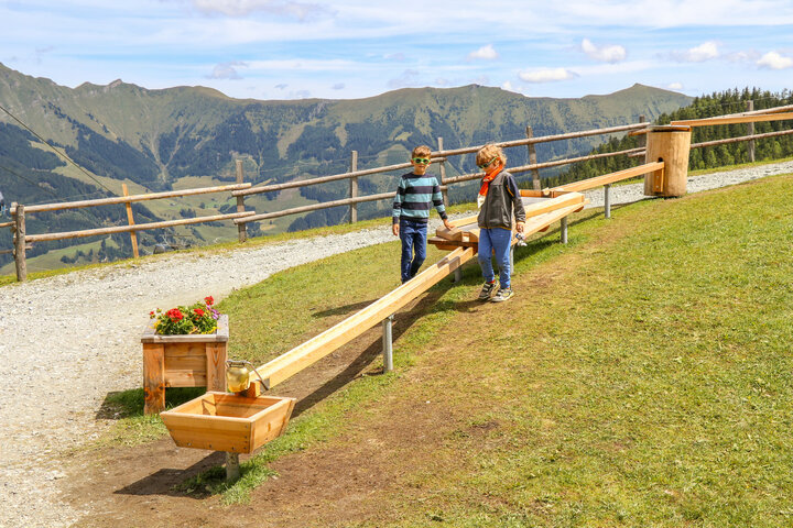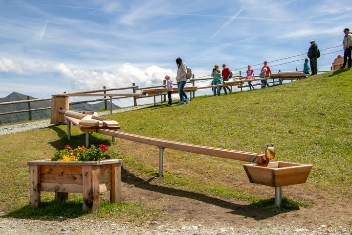 Immediately after getting off the Hochalmbahn and before the planned family hike or the visit to the bird of prey show, it welcomes all summer guests.