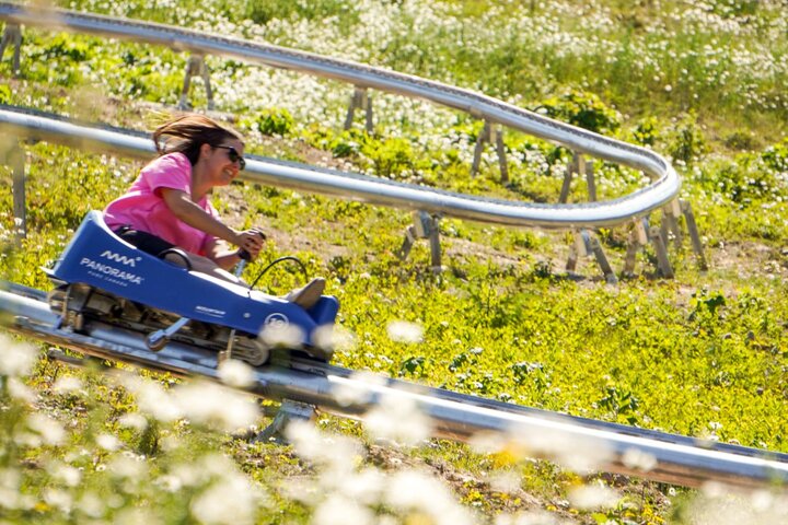 The summer toboggan run (with 45 toboggans), designed and built by Sunkid, is located in the "Discovery Zone". The experience begins with an ascent on the Discovery chairlift to an altitude of 1,351 meters. From there, the wild ride begins, taking guests through dense pine forests and open mountain terrain. Riders reach speeds of up to 40 km/h on the one-kilometre route, negotiating exciting bends and hairpin bends. The difference in altitude of 171 meters provides plenty of adrenaline and thrills.