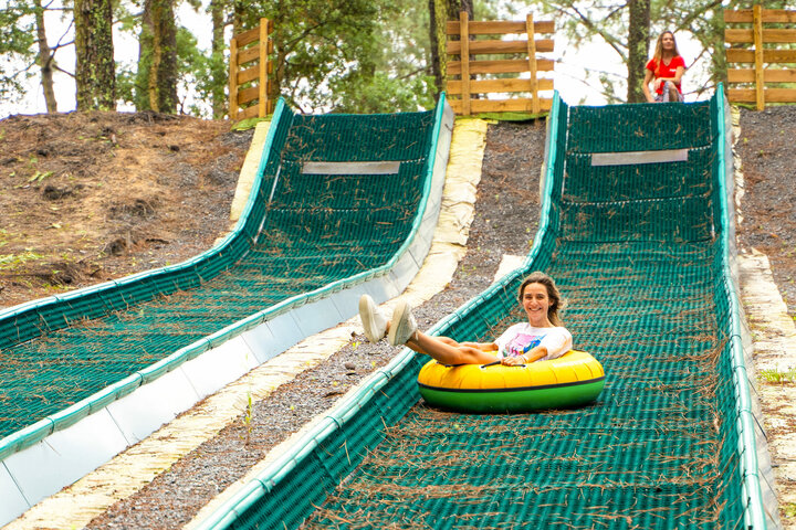 Here, two tubing slopes arranged next to each other, which were realized together with Sunkid, offer fast-paced action. Both Tubby Evolution plastic tracks, including side boundaries, are 88 meters long and completely straight - for maximum speed! Thanks to their green color scheme - in combination with artificial turf surfaces and wooden railings - the two slopes blend in perfectly with the surroundings of the region's typical pine forest.