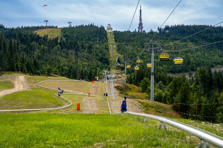 In summer 2024, the latest action-packed summer attraction for young and old was installed as part of a lift expansion project (T-bar and chairlift) by the Leitner company: the first Sunkid Mountain Coaster in Poland - the second Mountain Coaster 2.0 to be put into operation worldwide.