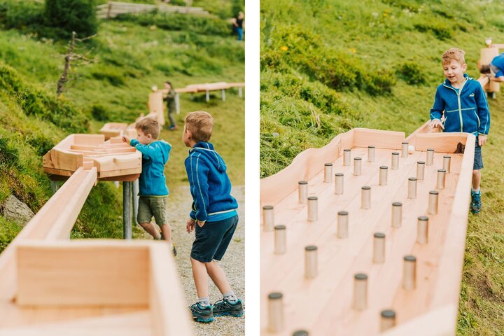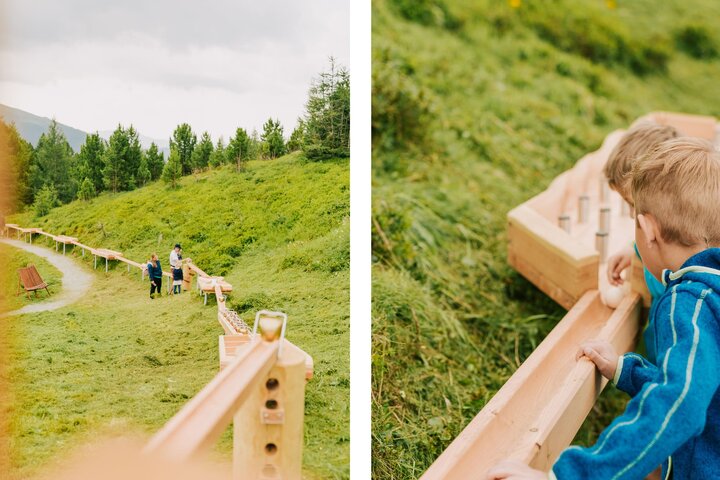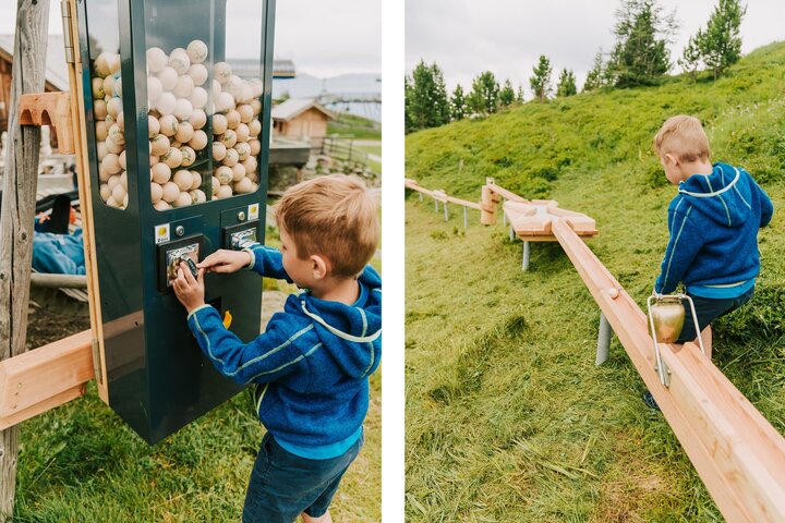 In the middle of the Nockberge mountains on the Turracher Höhe (Austria), Wooden Ball Tracks from Sunkid invite families to a special play experience. Located directly at the mountain station of the panorama lift, at around 2,000 meters above sea level, it is part of the "Nocky's AlmZeit" adventure world. The entire facility consists of two tracks with lengths of 30 and 50 meters, which guide wooden balls through obstacles, steep curves and sound games. The course of the ball can be actively accompanied, which fascinates children in particular time and time again.