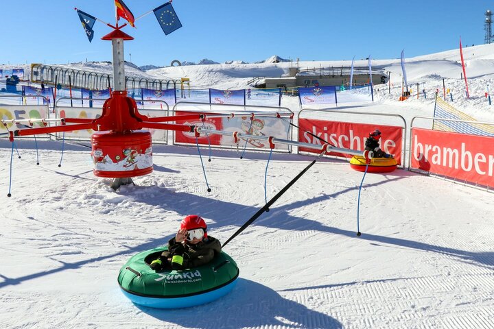 In addition to its use as a skiing and tubing attraction in the snow, there are other variants and options for the Sunkid Rotondo: With plate bars attached to it, you can ideally prepare beginner skiers for their first lift ride. In summer, the Rotondo delights families as a swing carousel or offers tubing fun on dry slopes.