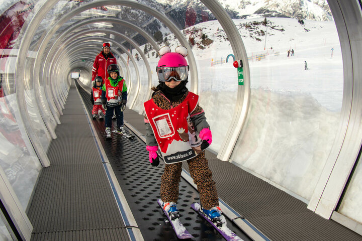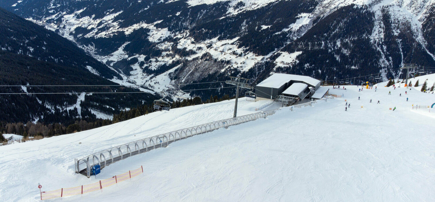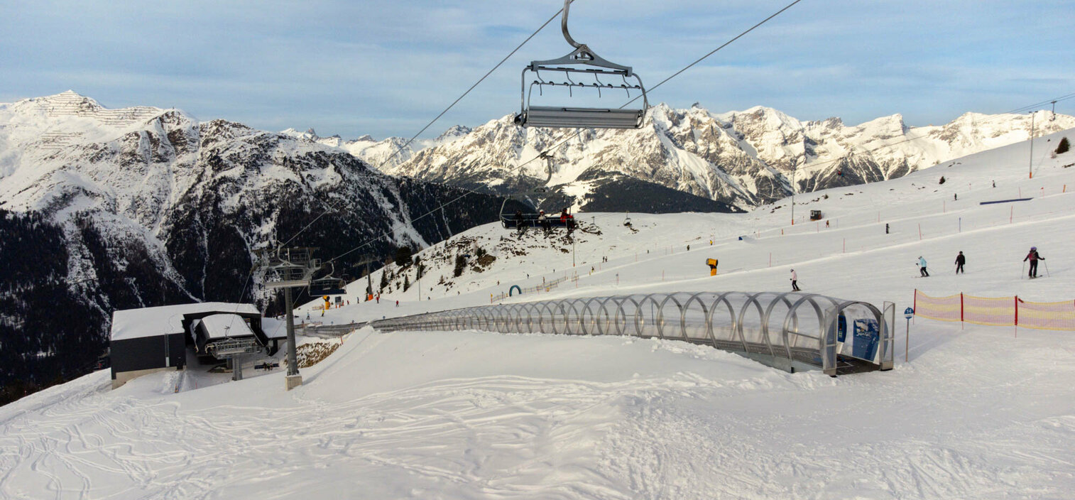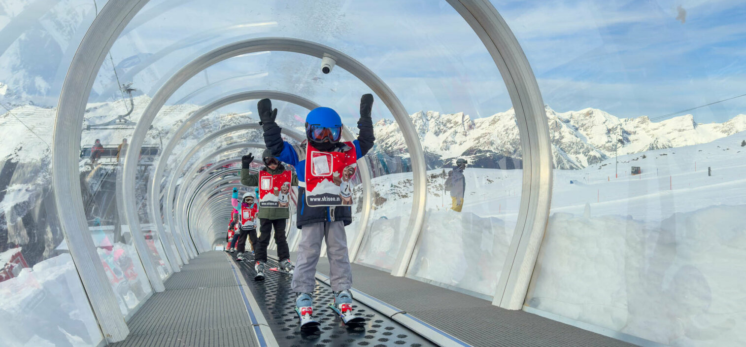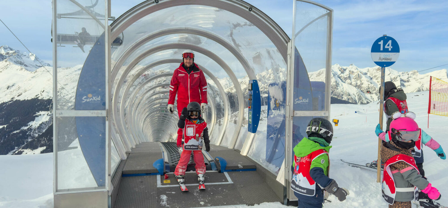 The See ski resort in the Paznaun Valley (Austria) opened a completely new area for families and beginners for the 2025/2026 ski season - with wide practice slopes, its own family snow park and optimized piste connections. With the "Familienglück" chairlift, this area, including the freestyle area, can now be easily reached by skiers of all abilities. Once there, right next to the "Familienglück" valley station, the new 152-metre-long Sunkid "Almwiese" Moving Carpet allows winter sports beginners and Ski School students many relaxed ascents between their exercises on the beginner-friendly blue slope 14.