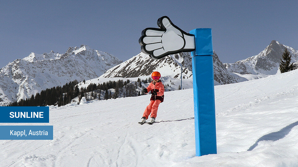 Monster elements from the Sunkid product portfolio "Sunny Stuff" round off the experience on every descent variant - two routes are available in Kappl. Turn-around Maxi and High/Low 5 Maxi, as well as the final Monster Ski Boxing, feature mascot prints and comic speech bubbles. BANG! The hanging foam disk of this element is catapulted into the air and the kids are immediately ready for the next exciting Sunline descent.