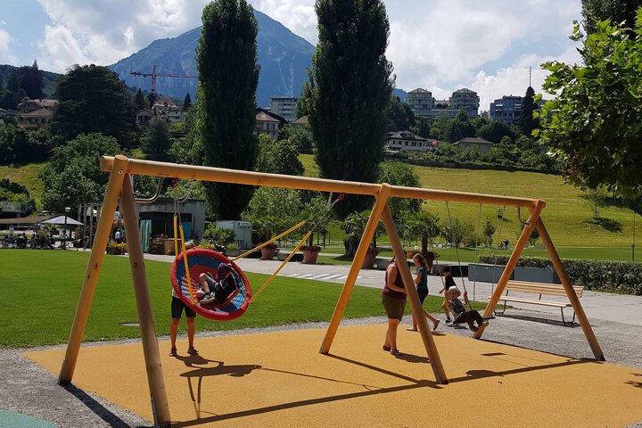 The municipality of Spiez in the Swiss canton of Bern is a very popular destination for visitors from Switzerland and abroad. A very special crowd puller is the Spiezer Bucht with the landing stage of the BLS Schifffahrt Thuner- & Brienzersee. The local recreation area offers a varied range of leisure activities, such as a swimming pool, a mini-golf course, a skate park, small stores and a playground. This playground was due for general renovation, so there was an official invitation to tender. Nine out of ten invited companies took part in this competition - the winner was Borer Lift AG, part of Sunkidworld.